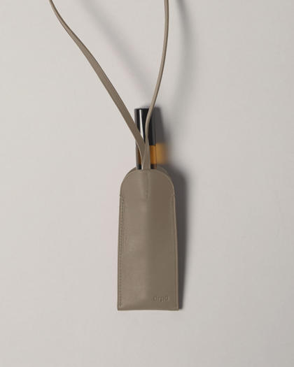 A leather carrier formed for a refillable 10ml vial of a select Arpa scent. Wear this around the neck during travel for frequent reapplication to skin, and to induce dreaming.
